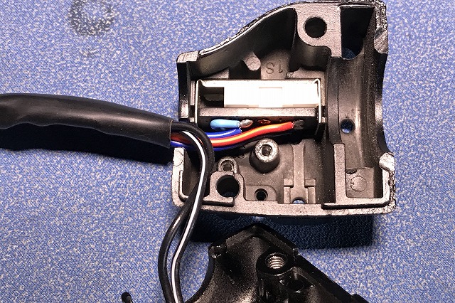純正下側にスイッチを取り付けます。 上部ケースのケーブルは写真の位置へ。  |